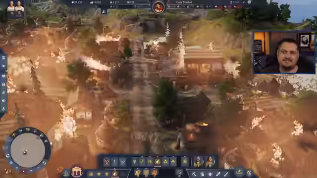 00:50:02Der Streamer erkundet die neuen Bau- und Layout-Möglichkeiten von Anno 117. Er experimentiert mit der Platzierung von Gebäuden wie der Feuerwache und stellt die neuen Bausysteme vor, darunter die diagonalen Baufunktionen und die Möglichkeit, ganze Abschnitte von Mauern abzureißen. Eine Neuigkeit ist die Existenz von zwei verschiedenen Mauertypen: eine rein optische und eine funktionale Verteidigungsmauer, die Feindtruppen aufhalten kann. Der Streamer betont die gestiegene Komplexität des Spiels, insbesondere durch die Abhängigkeit von der Waldnähe für die Holgewinnung.