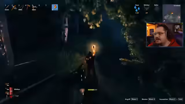 02:38:19Ein unerwarteter Raid bricht über die Community herein, obwohl die Angriffe normalerweise erst nach dem Bossieg Eiktor erfolgen. Der rote Raid-Kreis auf dem Bildschirm zeigt die Ankunft des Nixe-Gottes an. Unter dem Ruf 'Alle zum langen Haus!' wird das Gebäude verteidigt. Der Streamer, ungewohnt im aktiven Kampf, übernimmt die Befehlsgebung, während die Community zusammenhält und den relativ kleinen Raid erfolgreich abwehrt.