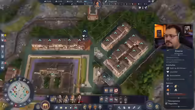 03:20:44Die Meinung des Kaisers hat sich zum Negativen gewendet, was die Kaiserliche Armee gegen den Spieler aufbringt. Der Streamer äußerte seinen Unmut über die Platzierung bestimmter Gebäude wie Sandalenmacher und Spinnereien, die ästhetisch nicht in das Stadtbild passen. Er erwägt, diese Gebäude an andere Stellen zu versetzen, selbst wenn dies bedeutet, auf Bonusbereiche zu verzichten, da ihm die Optik wichtiger ist. Währenddessen diskutierte er mit dem Chat über die historische Korrektheit von Aquädukten und ob die Römer diese als ästhetisch empfanden. Er stellte fest, dass es schwierig sei, solche historischen Empfindungen zu rekonstruieren und scherzte über die Notwendigkeit eines Forums, das ebenfalls an eine Zisterne angeschlossen sein muss, um die Stadtentwicklung voranzutreiben.