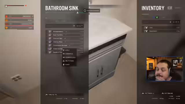 02:51:44Nachdem ein erster Vorstoß in die Spielwelt gescheitert ist, beginnt der Streamer systematisch mit der Suche nach wichtigen Ressourcen. Er fährt mit einem Auto los, um eine Apotheke zu finden, um seine Krankheit zu heilen, und muss dabei den Tank des Fahrzeugs betanken. Während der Erkundung trifft er auf mehrere Zombies, kommt zu einem Tankwart in eine Apotheke, die jedoch bereits geplündert ist. Es werden verschiedene Gegenstände wie Geld und Papierstücke eingesammelt und die Jagd auf Zombies aufgenommen.