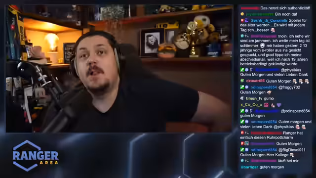 00:12:25Der Streamer begrüßt seine Zuschauer herzlich zu einem besonderen Sonntagmorgen-Programm und scherzt über die 'besonderen Menschen', die so früh dabei sind. Er spricht über seine wilden Haare, die er heute nicht bändigen kann, und vergleicht seine Frisur mit einem 'gottlosen Durcheinander'. Er erwähnt, dass eine Glatze ihm überhaupt nicht stehen würde und er dann wie ein 'Nacktmulch' aussehen würde. Weiterhin teilt er mit, dass er krank war und sich noch nicht ganz erholt hat, was sich an seiner Nase und seinem geschwollenen Auge zeigt. Er hätte gerne gefeiert, musste aber aufgrund seiner Krankheit zu Hause bleiben, fühlt sich aber immerhin nicht mehr ganz so schlecht. Er berichtet von einer schlaflosen Nacht, in der er um 3 Uhr morgens von seinem Kind, Little Ranger, geweckt wurde, was ihn zu Tode erschreckte. Er schildert seine Rückenschmerzen, die er vom langen Sitzen vor dem Computer hat, und macht Witze über sein Alter und den 'Rentner-Stream', der nicht zu schnell sei.