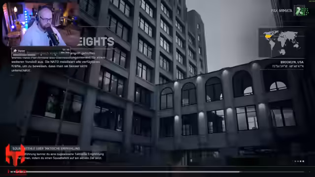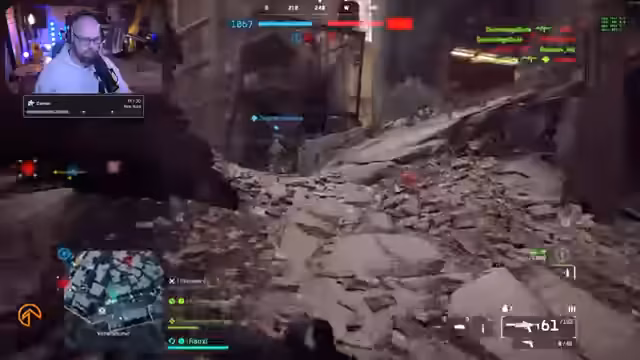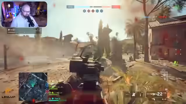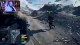 00:04:45Die ersten Minuten im Spiel sind geprägt von intensiver Action und dem Testen verschiediger Waffen, wie des Aufklärers und der TR7. Während die Runde zunächst entspannt verläuft, wird sie durch das Auftreten eines feindlichen Helikopters dynamischer. Der Streamer experimentiert mit Taktiken, greift Panzer an und bemerkt die Stärke der Pickup-Waffen, insbesondere der Minigun. Das Gameplay wird als sehr filmisch und abwechslungsreich beschrieben, auch wenn es gelegentlich durch den Netcode frustrierend wird.