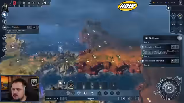 03:48:34Der Fokus verlagert sich auf die Territoriumskontrolle. Der Streamer findet ein Naturwunder, das Flame of Duskfire, und erobert es, um die Kontrolle über dieses Gebiet zu gewinnen. Im Anschluss wird eine neue Feindeinheit, der Observer, gesichtet und ein Kampf beginnt. Dieser gestaltet sich jedoch problematisch, da der Gegner über stark Fähigkeiten verfügt und die Kämpfe teilweise unbalanciert wirken. Der Streamer kritisiert die Kampfdynamik und den Verlust von Einheiten.