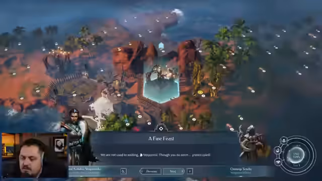 00:53:59Nach einer kurzen Vorbereitung startet der Streamer in die Preview von Endless Legend 2. Er gibt eine kurze Einordnung in die Spielereihe, zu der auch Endless Space und Dungeon of the Endless gehören. Er erklärt, dass Amplitude Studios nun unabhängig sind und Hooded Horse als Publisher fungiert. In der Demo werden die ersten 125 Runden gespielt. Der Streamer wählt die Fraktion 'Kin of Sheradeen' aus und beginnt mit der Erkundung der Startwelt, während er die grundlegenden Mechaniken wie Ressourcen, Helden und den Zugmodell erklärt.