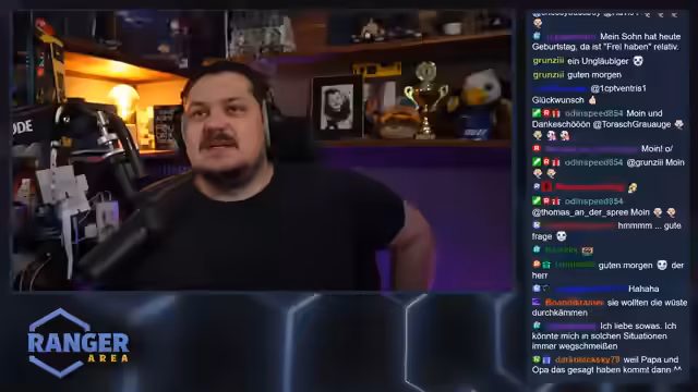 00:11:24Nach anfänglichem technischem Hickup begrüßt der Streamer sein Publikum und kündigt den Start des ersten Streams im April an. Nach einem freundlichen Begrüßungsritual folgt eine lange Danksagungsphase, in der er seine Follower und Unterstützer für ihre langjährige Treue, darunter einige für über 35 Monate, würdigt. Dabei erwähnt er auch den Karfreitag als Feiertag in Deutschland und geht humorvoll auf seine persönliche Situation als Atheist ein, nachdem seine Tochter Little Ranger bei seinen Schwiegereltern eine absurde Geschichte über Kreuzzüge und ein in der Wüste gestrandetes Kreuzfahrtschiff gehört hat.