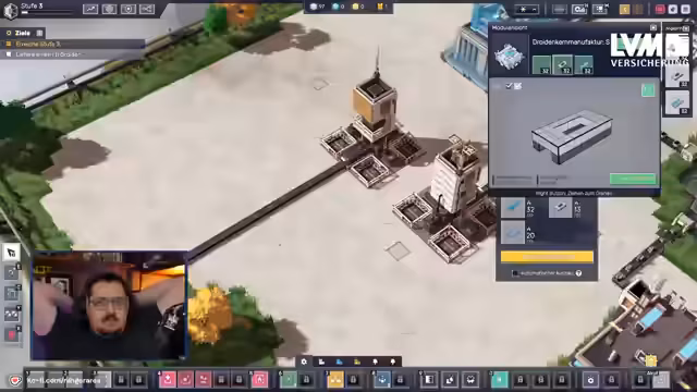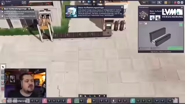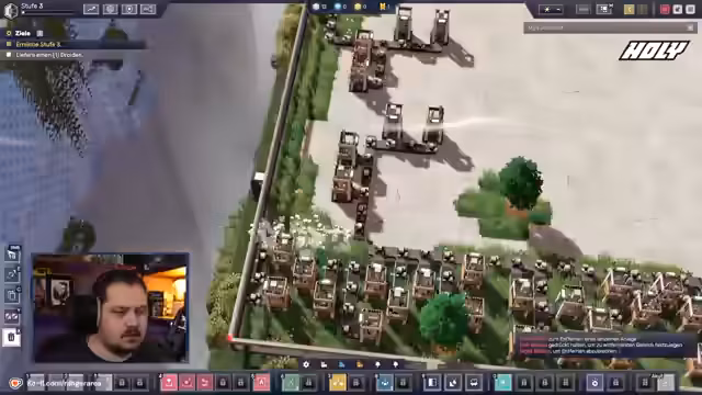 01:12:31Nach Erreichen von Stufe 2 wird die Erweiterung des Territoriums möglich. Dies ist notwendig, um auf neue Materialien zuzugreifen und die Produktion weiter auszubauen. Gleichzeitig entstehen erste logistische Engpässe und ein Ressourcenstau, da die bestehende Produktionslinie noch nicht optimal aufeinander abgestimmt ist. Der Streamer plant daher, die Produktionsketten effizienter zu gestalten und zu zentralisieren, um die Engpässe zu beheben.