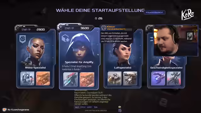 06:54:35Das nächste gespielte Spiel ist 'Mechabellum', ein taktisches Brettspiel, bei dem die Spieler ihre Einheiten auf einem Spielbrett platzieren. Es erfordert strategisches Denken und Teamkommunikation. Einer der Streamer, der beide Spielbrett-Seiten kontrolliert, hat einen signifikanten Nachteil, da er nur 60 Sekunden Zeit pro Zug hat, während die Gegner jeweils 120 Sekunden haben. Das Team muss eng zusammenarbeiten, um die gegnerischen Formationen zu analysieren und eigene Einheiten effektiv zu platzieren, um Vorteil zu erzielen.