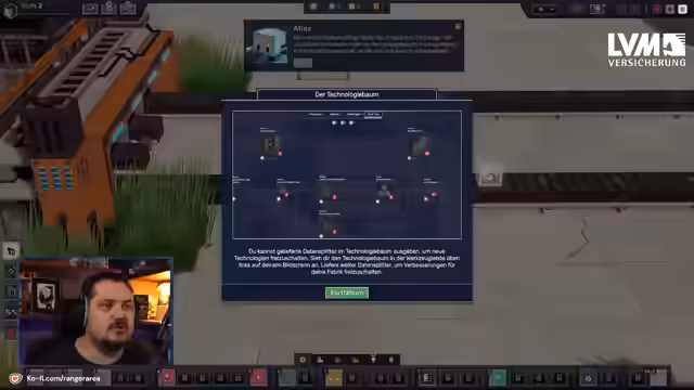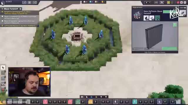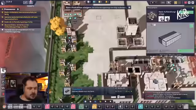 01:57:19Durch das Liefern von grauen Prozessoren, die im Datenzentrum erzeugt werden, können neue Technologien im Technologiebaum freigeschaltet werden. Dies ermöglicht den Bau einer Basis-Raffinerie und erfordert blaue Hexakristalle. Gleichzeitig beginnt der Streamer damit, bestehende Gebäude wie die Aufbereitungsanlage auf die zweite Ebene auszubauen, um deren Effizienz zu steigern. Dieser Prozess stellt eine neue Herausforderung dar, da die Produktion der dafür benötigten Ressourcen aufrechterhalten werden muss.