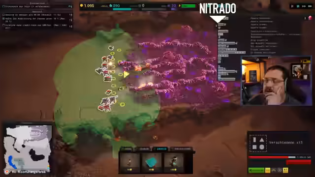03:39:50Nach dem Sammeln von Forschungspunkten werden Upgrades freigeschaltet, darunter verbesserte Waffen und Fähigkeiten wie Meteor und Orbitallandung. Die aktuelle Mission erfordert, die Ausbreitung der Feinde unter 70% zu halten und eine Kreditrate von 700 pro Minute zu erreichen. Dies führt zu intensiven Kämpfen mit den stark gewordenen Kalix-Einheiten, die aggressive Verhaltensweisen zeigen.