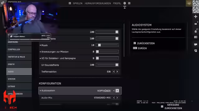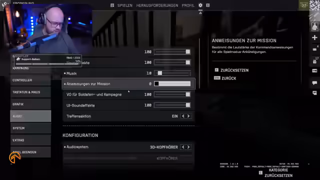 06:14:47Die Audio-Technik nimmt einen bedeutenden Teil des Streams ein. Nach anfänglichen Problemen mit den Headset-Einstellungen wird die Kombination aus 'räumlichem 3D' und 'Kriegsbändern' als extrem positiv bewertet. Dieses Setup ermöglicht eine präzise Ortung von Gegnern durch die Schussrichtung, was als Gamechanger für das taktische Vorgehen gilt. Allerdings wird erwähnt, dass das Hören von Schrittzgeräuschen weiterhin mapabhängig ist.