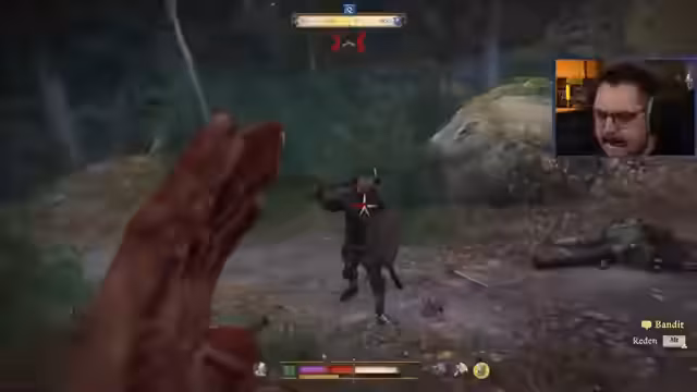04:08:36Nachdem die Banditen besiegt wurden, konzentriert sich der Streamer auf den Anführer der Gruppe, der sich als besonders widerstandsfähig erweist. Nach mehreren Versuchen gelingt es, diesen durch gezielte Angriffe von oben und dem Einsatz von Tränken zu bezwingen. Anschließend wird die restliche Beute aufgesammelt und der Streamer nutzt einen Retterschnaps, um das Geschehen zu speichern, bevor er sich auf den Weg zum nächsten Ziel macht.