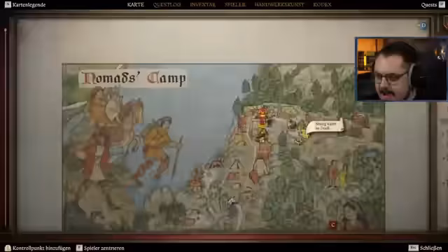 00:19:26Nachdem die Vorbereitungen getroffen wurden, beginnt der Streamer mit dem Spielen von Kingdom Come: Deliverance 2. Er schlüpft in die Rolle von Heinrich, der nach einem Überfall mittellos ist und auf der Suche nach Ausrüstung, Geld und seinem Freund Hans ist. Er stiehlt aus Notwendigkeit Äpfel und versucht, ein Schloss aufzubrechen, scheitert jedoch. Später klaut er ein Pferd und wird von einer Wache ertappt. Als Konsequenz wird er verhaftet und muss eine Strafe am Pranger akzeptieren, wodurch sein Ruf sinkt und der Umgang mit Personen erschwert wird.