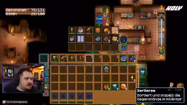 01:08:39Der Stream beginnt mit einer positiven Einführung in Core Keeper. Es werden grundlegende Gameplay-Mechaniken vorgestellt, wie das Platzieren von Truhen und das Sammeln von Ressourcen wie Holz. Der Streamer zeigt eine verschlossene Kupferkiste, deren Öffnung einen speziellen Schlüssel erfordert, und stellt fest, dass ihm dieser fehlt. Parallel wird der Start des Ackerbaus demonstriert, bei dem Wurzelsamen und Paprika gepflanzt werden, um Nahrung zu produzieren.