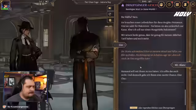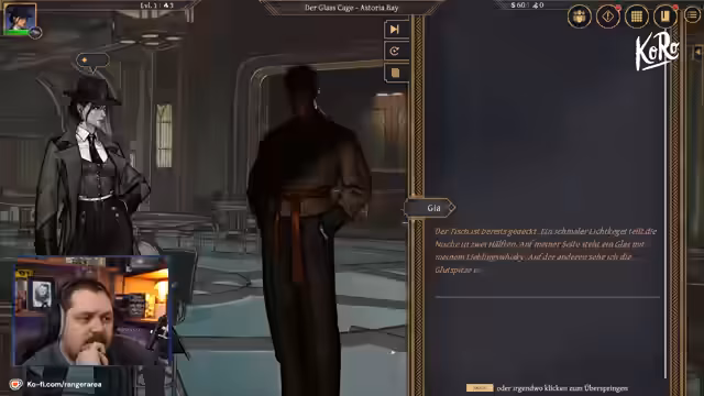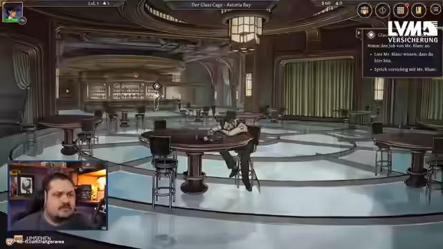 00:35:51Der Streamer startet mit dem Spiel 'F.E.A.R.', einem Story-RPG im Stil der 30er-Jahre. Er wählt den Schwierigkeitsgrad 'ausgeglichen' und beginnt im Prolog. Er übernimmt die Rolle der Schmugglerin Gia, erkundet die Umgebung 'The Glass Cage', eine Bar in Astoria Bay, und nimmt die erste Mission von einem Mr. Blank an. Die Mission führt ihn zu einem Taxi-Unternehmen, um den Kontakt zu einer Person herzustellen.