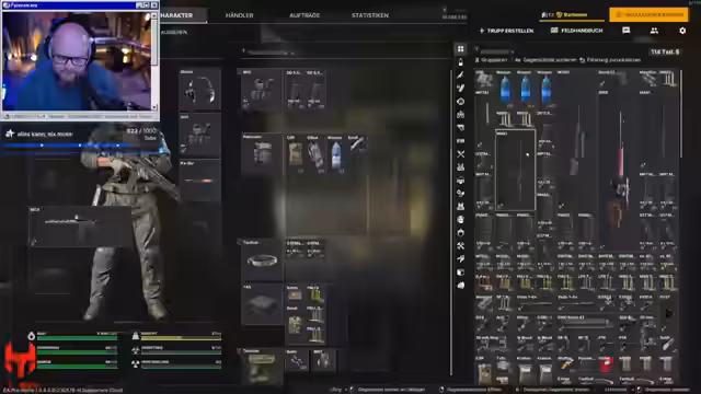 00:40:45Nachdem die aktuelle Quest abgeschlossen ist, muss sich der Streamer neu aufrüsten. Er besucht einen Händler, um Munition nachzukaufen, entscheidet sich für eine teurere 0.300er-Munition (Amor-Piercing) und erwägt den Kauf einer neuen M4 für 6800. Er stellt fest, dass er durch die 'Supporter Edition' deutlich schneller an Kapital kommt, da er den Secure Container für viel Geld verkaufen kann und bisher nur ein- bis zweimal gestorben ist.