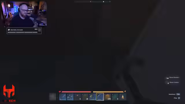 08:47:11Trotz Erschöpfung und bereits laufender Uhrzeit (nach 30 Stunden) wird der Plan verwirklicht, eine Mini-Base mit Bett als Endpunkt des Streams zu bauen. Der Bau gestaltet sich als frustrierend: Baupläne werden mehrfach verworfen, Material fehlt (Holz, Kobalt), Strukturen müssen abgerissen und neu aufgebaut werden. Der Streamer kämpft mit den kreativen Möglichkeiten und Grenzen des Bau-Systems, findet aber positive Aspekte wie die freie Sicht durch Stützkonstruktionen.