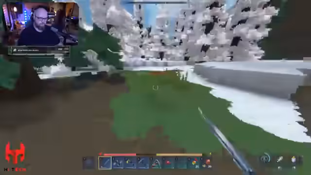 07:12:24Die Funktionalität von magischen Waffen (Eisstab, Feuerstab) wird getestet. Dabei wird klargestellt, dass Munition in Form von Eisessenz (von Eiswölfen) bzw. Feueressenz benötigt wird. Es folgt ein praktischer Test: mit einem Eisstab wird auf den Streamer geschossen, zeigt aber keine Wirkung (möglicherweise aufgrund von Friendly-Fire-Deaktivierung oder fehlender Tooltip-Funktion). Der Chat (Lepi) wird für wertvolle Hinweise zur Munitionsgewinnung gelobt.