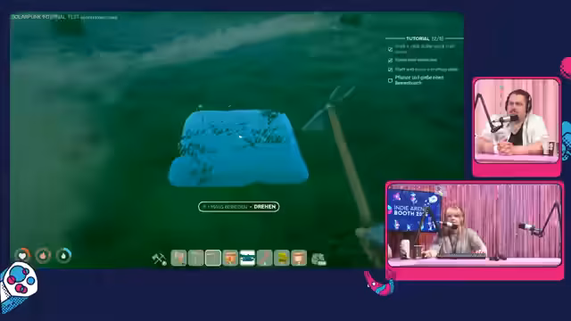 02:25:22Ein weiteres Spiel im Fokus ist Solarpunk, ein deutsches Open-World-Survival- und Aufbauspiel. Es besticht durch eine ansprechende Optik und ist auf fliegenden Inseln angesiedelt. Der Gameplay-Anfang beinhaltet das Sammeln von Ressourcen, das Bauen einfacher Werkzeuge und das Anpflanzen von Nahrungspflanzen wie Bärenbusch, was ein Stardew Valley-ähnliches Gameplay andeutet. Das Spiel soll später auch Energiewirtschaft und Automatisierung bieten.