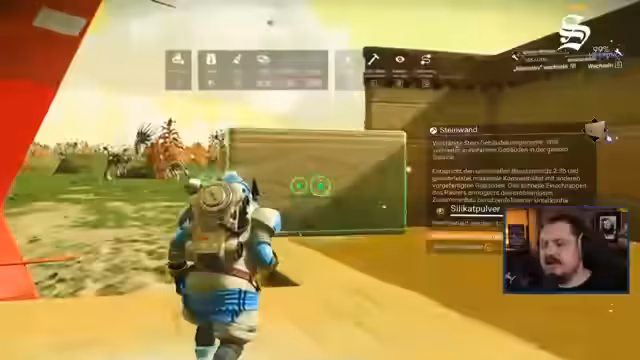 01:08:47Der Stream konzentriert sich auf den Bau einer abgeschirmten Basis mit Steinwänden. Nach dem Platzieren der ersten Wände fallen seltsame, matschige Texturen auf, die den Bauprozest stören. Der Streamer experimentiert mit verschiedenen Bauelementen, stellt aber fest, dass das Einbauen von Wänden unter anderen Wänden nicht möglich ist, was zu Frustration führt. Er äußert sich auch negativ über das Terraforming-System, das er als schäbig bezeichnet.