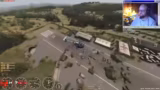 00:05:54Nachdem die Serververbindung letztendlich erfolgreich hergestellt wurde, beginnt das Gameplay auf der neuen Map. Die Streamer erkunden die Map und starten mit dem Bau einer Basis. Das Gameplay wird jedoch durch einen kritischen Bug beeinträchtigt: die Funkkommunikation funktioniert nicht. Dies erschwert die Koordination erheblich, da Trupps nicht koordiniert werden können und die gegnerischen KI-Feinde an den Flaggen respawnen, was den Spielverlauf stört.