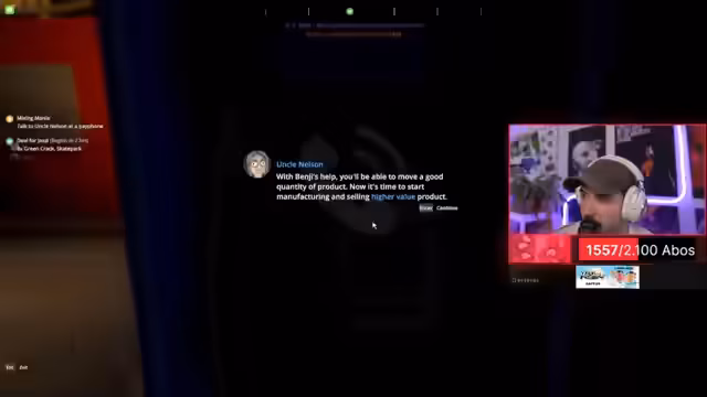 04:30:36Das Spiel zeigt ein Startmenü für ein illegales Drogengeschäft. Sie müssen 'friendly relationship status' mit Chloe, Ludwig oder Beth erreichen und Deals abschließen. Es gibt Probleme: die Polizei hatte den Streamer aufgehalten, sie haben kein Bargeld und keine Samen. Sie müssen Samen bestellen, sind aber zeitlich limitiert und können maximal 300 Dollar pro Bestellung ausgeben. Die Organisation der Lieferung und der Deals wird komplex, und sie müssen den Überblick über Kunden und Lieferorte behalten.
