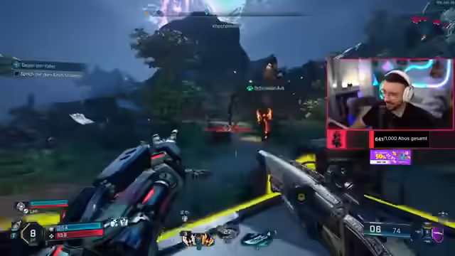 Gemeinsamer Spieldurchgang von Borderlands 4 mit Freundin. Nach der Charakterauswahl, inklusive 'Amon' und 'Malo', werden erste Missionen absolviert. Gameplay-Erfahrungen, Skillungen und Waffenaffinitäten werden erkundet. Ein Weltboss wird herausgefordert, Sidequests werden angenommen. Diskussionen über Charaktere, Waffen und Spielmechaniken prägen den Verlauf.