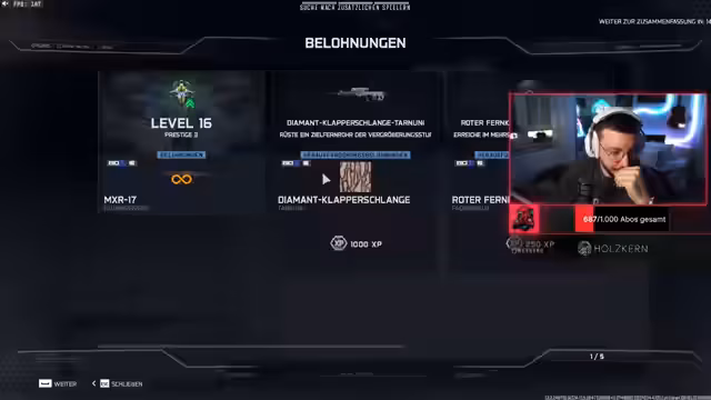 05:40:15Die Spieler arbeiten weiterhin daran, Goldtarnungen für ihre Waffen freizuschalten. Ein Spieler freut sich, dass er ein weiteres Sturmgewehr freigeschaltet hat und nun mit seinem LMG im Stellung-Modus Kills sammeln kann. Kurz darauf wird auch ein neuer Sniper freigespielt, der sich als halbautomatisch herausstellt, was gemischte Reaktionen hervorruft. Es gibt eine kurze Diskussion darüber, ob für Platin-Tarnungen auch Sniper und DMRs auf Gold gespielt werden müssen, was verneint wird. Die allgemeine Stimmung ist eine Mischung aus Freude über die Fortschritte und Frustration über schwierige Spielsituationen, die das Erreichen der Ziele erschweren.