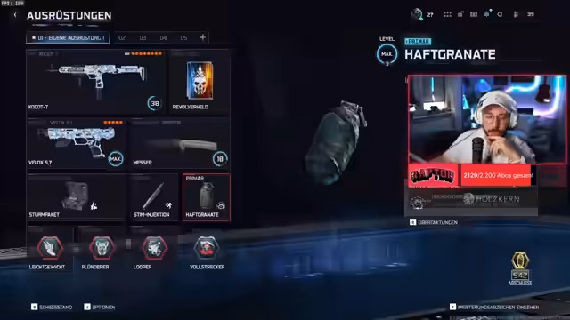 01:56:15Nachdem der Streamer sich die Warzone-Maps angesehen hat, entscheidet er sich, eine Runde zu spielen. Er beginnt damit, ein Loadout für die Waffe 'MP7' zusammenzustellen und wählt wichtige Anpassungen wie 'Lauftempo beim Zielen', 'ZV-Geschwindigkeit' und 'Pufferfedern'. Bei den Perks wird er eine lange Abwägung zwischen 'Veteran' und 'Sprinter' treffen und letztendlich den 'Veteran'-Perk als 'No-Brainer' bezeichnen. Die Diskussion rund um die Vor- und Nachteile der einzelnen Perks ist zentraler Bestandteil dieses Abschnitts und zeigt die detaillierte Vorbereitung auf den Warzone-Einstieg.