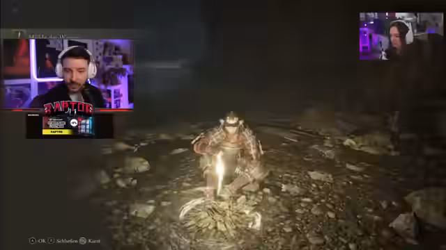 00:11:04Der Stream beginnt mit der Ankündigung einer gemeinsamen Elden Ring-Session, bei der die Freundin des Streamers, Lea, das Spiel zum ersten Mal spielt. Der Streamer ist anfangs nervös und muss technische Hürden überwinden, um das Gameplay und die Kamera von Lea für die Watch-Party zu übertragen. Nach anfänglichen Schwierigkeiten mit der Bildschirmübertragung und Discord-Verbindung, gelingt es ihm, eine stabile Verbindung herzustellen und das Spiel zu starten.
