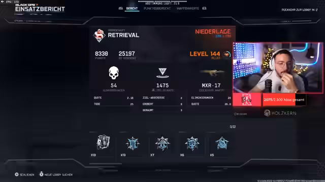 02:29:11Der Streamer erklärt die Wirksamkeit des Looper-Perks für schnelleres Aufladen von Streaks und diskutiert Event-Herausforderungen (z.B. Feuerschaden-Missionen). Er bestätigt, dass er weder Kampagne noch Zombies für Camos grinden wird – nur Multiplayer steht im Fokus. In persönlichen Ausführungen teilt er seine Ablehnung von Influencer-Events mit, da er sich in großen Creator-Guppen unwohl fühlt. Gegen Ende des Streams zeigt er seine neue MXR-Klasse mit Drachentarnung und diskutiert mit dem Chat über geplante Weihnachtsreisen.