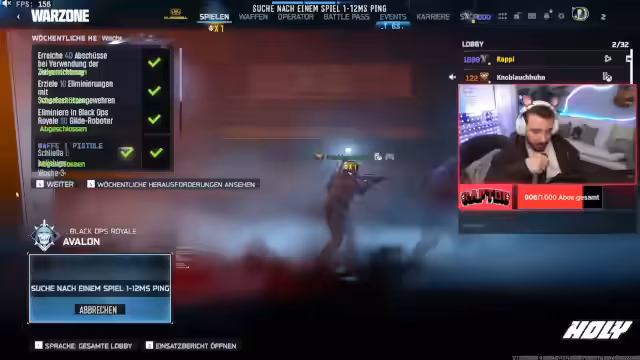 02:44:02Der Streamer konzentriert sich auf das Finden von Loot in der Spielwelt, wobei er spezielle Items wie Upgrade Kids und Raps sucht. Er zeigt Frustration über Bot-Lobbys, die das Spielerleismaß beeinträchtigen und das Finden voller Lobbys erschweren. Nachdem er eine Lobby gefunden hat, ist er erleichtert, da er zuvor Wetten abgeschlossen hatte und diese nun gewann. Er erwähnt auch den Gewinn von zwei Wins und das Fehlen von Waffenwechseln während des Spielens.