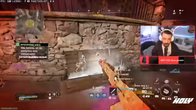01:15:37Der Streamer konzentriert sich auf das Spielen des Zombie-Modus, wo er regelmäßig auf neue Waffen trifft. Er ist besonders enthusiastisch über die Entdeckung einer Razor-Waffe und zeigt Tarnungen als sehr gelungen. Nebenbei erwähnt er gelegentliche technische Probleme und sucht stets nach Verbesserungsmöglichkeiten im Gameplay, um seine Zombie-Erfolge zu maximieren.