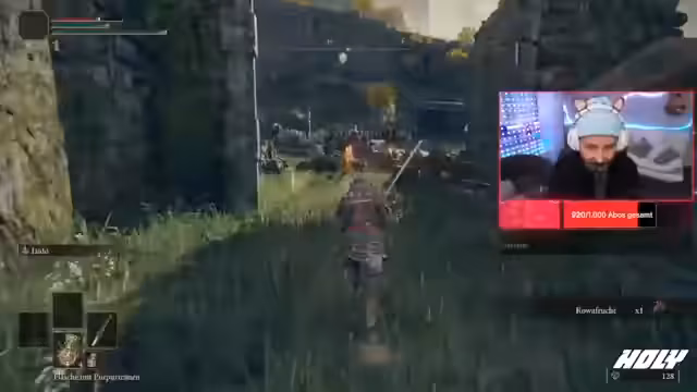 00:06:24Der Stream beginnt mit dem Streamer Srapi, der die Zuschauer begrüßt und sein Projekt für den Tag ankündigt. Es handelt sich um einen Durchspielversuch von Elden Ring, der jedoch mit einem speziellen Twist versehen ist: das Control-Play-Feature ist aktiv. Dieses von Zuschauern durch Bits oder Coins steuerbare Plugin erlaubt es, im Spiel Aktionen wie unkontrolliertes Bewegen oder Angreifen auszulösen, um den Streamer zu sabotieren.
