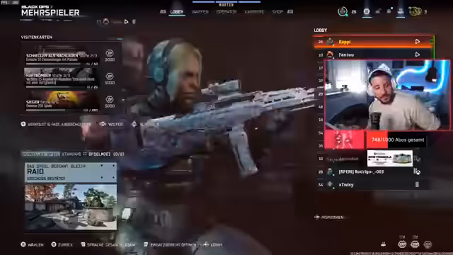 02:52:10Der Streamer zeigt Desinteresse an einer neuen Rebirth-Map in Warzone am 4. Dezember, da sie ihn nicht reizt, wieder in Warzone einzusteigen. Er freut sich auf eine Runde mit Kilo MP5. Er plant, heute Abend nach Hamburg zu fliegen, morgen Geburtstag zu feiern und am Samstag noch nichts geplant zu haben, außer Nuketown zu spielen. Er lobt die aktuelle Waffe als 'geiles Gerät'. Er bespricht mit einem Zuschauer die Möglichkeit, nach dem Bowling zusammen zu fahren und dort zu übernachten, um einen schönen Abend zu verbringen. Er hat keinen eigenen Wagen und muss die Verfügbarkeit eines Autos von seinen Schwiegereltern klären. Er spielt mit einer Sensibilität von 1-4-1-4 und hat den ZV-Multiplikator auf 1 gelassen. Er empfiehlt, die eigene Sensibilität zu finden. Er hat die Kampagne nicht gespielt und kein Interesse daran. Ein Zuschauer erwähnt, dass Floyd in seiner Lobby ist und live streamt, was geklärt wird.