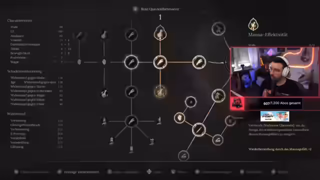 02:05:48Zu Beginn des Streams wird das neue Spiel als ein 10/10 Titeln vorgestellt, das im Xbox Game Pass verfügbar ist und derzeit zu 50% bei !Snocks reduziert ist. Der Streamer erkundet die Spielwelt, wobei er sich in einem verwinkelten Gebiet verläuft und mit der Wegfindung sowie der unübersichtlichen Karte hadert. Er sammelt Erfahrungspunkte, verbessert seine Attribute wie Vitalität und Stärke und erhält neue Zaubersprüche und Gegenstände, um seine Fähigkeiten anzupassen. Während der Erkundung stößt er auf verschiedene NPCs und sammelt Ressourcen, wobei er sich mehr Orientierungswünsche.