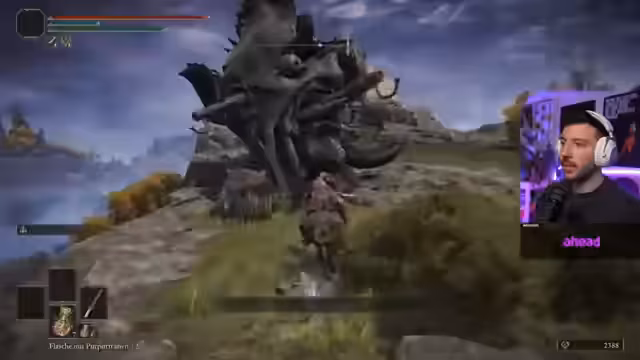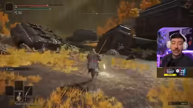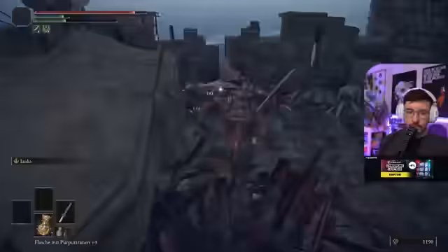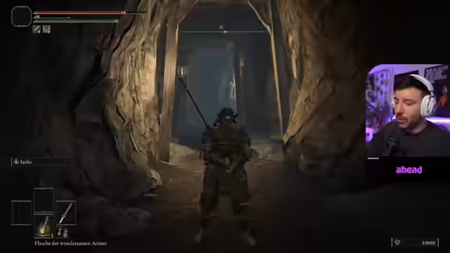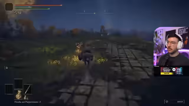 02:00:01Der Streamer spielt Elden Ring und befindet sich in einem neuen Bereich, wobei er die Umgebung erkundet und auf Items wie ein Siegel fürs Zaubernennt. Er beklagt, dass er die goldene Hellebarde aufgrund zu geringer Stärke (Stat) nicht effektiv nutzen kann und sich daher erst stärker aufbauen muss. Dabei diskutiert er auch über die Spielstrategie, gestern alle Gegner in einem Gebiet zu eliminieren, bevor man weiterzieht, und es als unangenehm empfindet, wenn man das nicht schafft und zum Gnadenort zurückkehren muss.