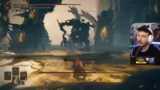 01:32:25Der Streamer konzentriert sich auf den Bosskampf gegen Gaius, wobei er sich über unfaire und 'verbuggte' Attacken ärgert, insbesondere die Hitboxen. Er experimentiert mit verschiedenen Waffen und Techniken, wie z. B. Jumping R2, um die Haltung des Bossen zu brechen, und betont die Aggressivität und die erhöhte Haltung des Bossen in der zweiten Phase. Sein Frust über den Kampf ist ein wiederkehrendes Motiv.