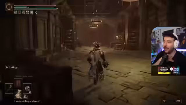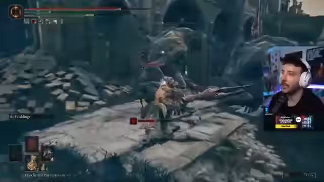 00:13:43Der Stream beginnt mit dem Streamer, der die Zuschauer begrüßt und sich auf die Inhalte des Streams vorbereitet. Er betritt sofort das Spiel Elden Ring und äußert seine Frustration über eine unglückliche Situation, die er als "Gesaftet" bezeichnet. Nach seinem Tod versucht er, sich neu zu orientieren und stellt fest, dass er bereits einige Erfahrungspunkte und Gegenstände aus dem DLC besitzt. Dabei erwähnt er auch die Erinnerung an einen früheren, frustrierenden Durchlauf des DLCs, den er als "Abfuck" beschreibt, und gibt an, diesmal anders und ohne reines Durchrennen spielen zu wollen.