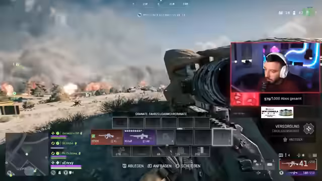 01:48:46Der Streamer wechselt in den 'Eroberung'-Modus auf der Map 'Ölfelder', den er nach eigener Aussage noch nie gespielt hat und erwartet, 'komplett überfordert' zu sein. Er wiederholt die Danksagung an EA für das Sponsoring des Placement-Segments und ermutigt die Zuschauer, den Link unter '!BF6' zu nutzen. Er stellt fest, dass es sich um eine sehr große Map mit nur echten Spielern handelt und dass das Einnehmen von Objectives auch Waffen-EP gibt. Während des Spiels versucht er, die Flaggen einzunehmen und sich gegen die Gegner zu behaupten, darunter auch Panzer. Er ist beeindruckt von der Atmosphäre und der Intensität des Spiels, auch wenn er sich noch an die Größe und Dynamik des Eroberungsmodus gewöhnen muss. Das Segment endet mit seinen Erfahrungen und Eindrücken aus diesem Modus.