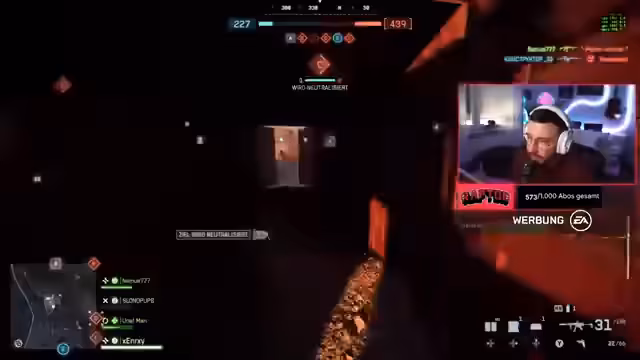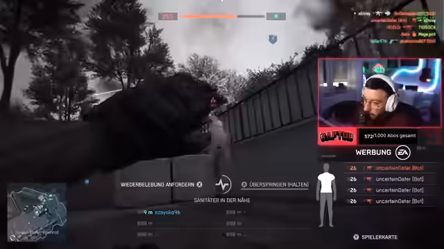 02:43:08Der Streamer bewirbt die Season 1 von Battlefield 6 und die Kooperation mit EA, indem er die Zuschauer auffordert, den Link im Chat (Ausrufezeichen BF6) zu nutzen, um das Spiel abzuchecken. Er erklärt, dass der Red Sack Battle Royale kostenlos ist, während der Multiplayer kostenpflichtig ist. Er bedankt sich bei EA für die Zusammenarbeit und äußert den Wunsch nach einer Killcam im Spiel, um besser nachvollziehen zu können, wie man getötet wird. Die letzte Runde im 4-gegen-4-Modus wird von einem extrem starken Gegner dominiert, der den Streamer und sein Team komplett auseinandernimmt, was ihn fassungslos macht. Abschließend bedankt er sich nochmals bei EA und Battlefield für die Zusammenarbeit in Season 1 und kündigt an, dass er den Stream beenden muss, um zu einer Fahrstunde zu gehen. Er wird auf Instagram informieren, ob er später noch einmal live kommt, und verabschiedet sich bis zum nächsten Stream.