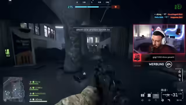 02:38:56Der Streamer erwähnt, dass der aktuelle Multiplayer-Stream eine Kooperation mit EA ist, um die Neuerungen der Season 1 zu präsentieren. Er wiederholt, dass ihm die zu großen Modi wie Eroberung nicht liegen, da sie ihn überfordern und ihm zu sehr nach Old-School-Battlefield anfühlen. Der Battle Royale-Modus hingegen mache ihm Spaß. Er lobt den Casual-Modus erneut als ideal für Anfänger, um ins Spiel zu finden, Kills zu machen und Waffen zu leveln. Nach einem Sieg im Casual-Modus mit der MP5, bei dem er MVP wird, hält er fest, dass Snipen nichts für ihn ist. Er möchte jedoch den 4-gegen-4-Angriffspunkt-Modus auf der neuen Map Blackwell/Ölfelder erneut spielen, da dieser ihm viel Spaß gemacht hat.