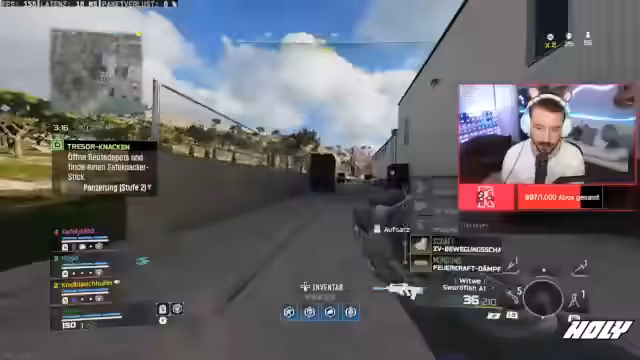 02:32:36Der Streamer zeigt trotz vieler Rückschläge weiterhin große Motivation für das Spiel Blackout. Er sieht seine Leistung als ambitioniert und betont, wieder Freude am Modus zu finden. Gleichzeitig reflektiert er über seine Spielweise und äußert den Wunsch, aggressiver zu spielen. Er erwähnt auch den Wunsch nach mehr Tiefe im Spiel, wie etwa das Hinzufügen von Nuke-Mechaniken oder die Möglichkeit, Waffen tarnen zu können.