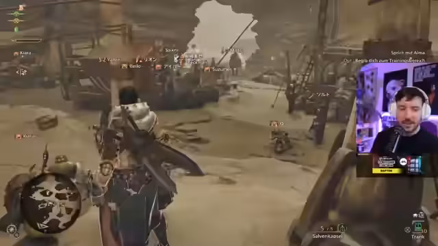 02:10:07Nach einem Sieg über das Anfangsmonster wird der Hub erreicht. Der Streamer erklärt, dass das gemeinsame Spielen der Haupthauptgeschichte wahrscheinlich nur nach dem Betreten des Lagers und dem Anschauen einer individuellen Cutscene möglich ist. Er erwähnt die Schwierigkeit, die Kamera anzupassen, und gibt den Rat, sich für neue Waffen auf YouTube-Videos zu konzentrieren, da das Spiel für Neueinsteiger überwältigend sein kann.