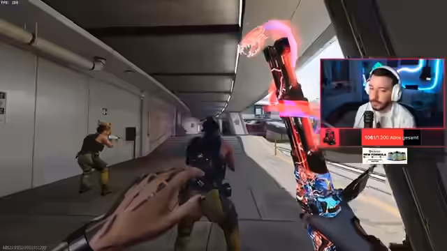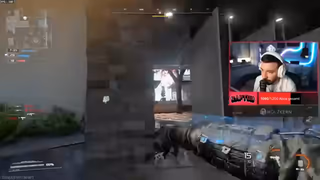 02:42:06Der Streamer entdeckt, dass die Burst-Pistole einen Prestige-Aufsatz besitzt, der ausschließlich positive Effekte mit sich bringt. Er listet die Verbesserungen auf: erhöhte Streuung beim Springen, verbesserte Stabilität beim Laufen, gesteigerte Bewegungsgeschwindigkeit, schnelleres Waffenwechseltempo und ein höheres Nachsprintschusstempo. Die Menge der positiven Eigenschaften überrascht ihn und er kommentiert humorvoll die deutsche Sprache, die diese Effekte beschreibt. Er kritisiert auch die Darstellung im Spiel, bei der diese Informationen über den gesamten Bildschirm laufen und als „respektlos“ empfunden werden. Trotz der positiven Aufsätze stellt er fest, dass die Burst-Pistole immer noch drei Treffer auf den Kopf benötigt, um einen Gegner zu eliminieren, was die Headshot-Challenge erschwert. Er überlegt, die Lobby zu verlassen, da ihm die Gegner zu aggressiv erscheinen.
