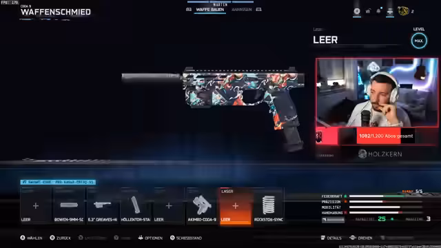 01:06:00Der Streamer beschließt, 'Geist' als Perk zu spielen, um nicht von Drohnen gestört zu werden, was er als logische und sinnvolle Anpassung für seine Pistol-Challenge ansieht. Er erklärt, dass er keinen 'Revolver-Held' benötigt und stattdessen 'Extra-Gear' wählt, um mit Schalldämpfer und Geist unentdeckt zu bleiben. Eine frühere Runde mit 14 Headshots wird als Erfolg verbucht, und er überprüft die Details des Kopfschusslaufs, stellt jedoch fest, dass dieser bei der aktuellen Waffe keinen signifikanten Vorteil bietet, da vier Treffer für einen Kill weiterhin erforderlich sind. Die Map 'Standoff' wird als potenziell schlecht für seine Ziele eingeschätzt, aber er entscheidet sich, trotzdem zu spielen. Während des Gameplays erlebt er frustrierende Momente mit Campern und Shotgun-Spielern, nimmt aber jeden Headshot mit, den er bekommen kann. Er erzielt eine beeindruckende Anzahl von Headshots in einer Runde, darunter einen Dropshot-Headshot, und freut sich über den Fortschritt. Er erreicht 50 Headshots mit der aktuellen Pistole in vier bis fünf Runden und hat noch 30 weitere zu erledigen. Er diskutiert mit der Community über die hohe Anzahl an Prestige-Spielern in den Lobbys und die Schwierigkeit, Low-Level-Spieler zu finden. Er überlegt, ob er das Spiel mit einem Zuschauer starten soll, um möglicherweise bessere Lobbys zu finden, da er Team Deathmatch spielt. Er bemerkt, dass er dringend auf die Toilette muss, nachdem er viel Wasser getrunken hat. Die Community spekuliert über eine mögliche Nuke mit der Pistole, und er gesteht, dass er im Hardcore-Modus bereits viel weiter mit den Headshots wäre. Er geht auch gezielt auf Kills, wenn ein Headshot unwahrscheinlich ist, und begrüßt weitere Zuschauer. Die Diskussion über Zombie-Tarnungen und Multiplayer-Camos wird fortgesetzt, wobei der Streamer seine Präferenz für Multiplayer aufgrund des Contents und des Spaßfaktors erklärt, während er Zombie-Modi als zu langweilig für den Stream empfindet.