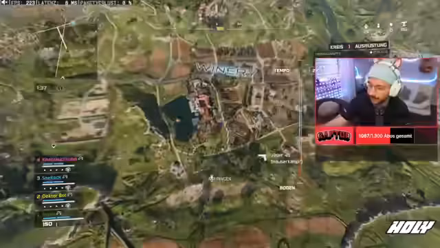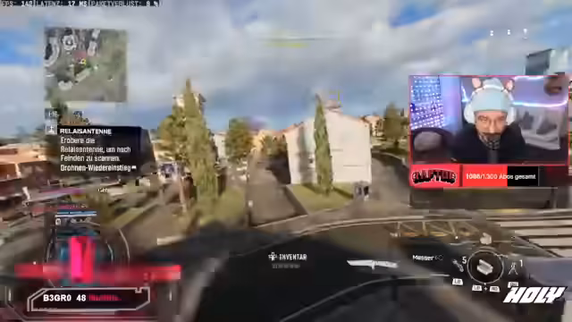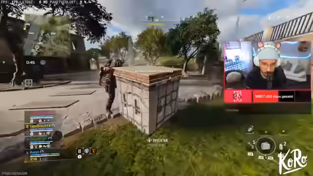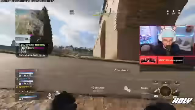 01:02:08Während des Streams erklärt Rappi wichtige Spielmechaniken im Blackout-Modus. Er erwähnt, dass Perks nach einiger Zeit ablaufen und dass es keine Selbst-Wiederbelebung gibt. Darüber hinaus führt er das Trauma-Kit vor, das den Schaden auf die Plattenweste um bis zu 50% reduziert, und beschreibt die Funktion von Türmen auf der Map, die Zipline-Pfade und Drohnen-Pings freischalten.