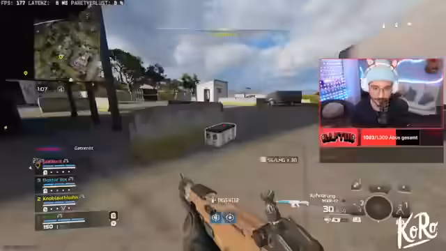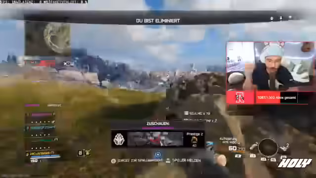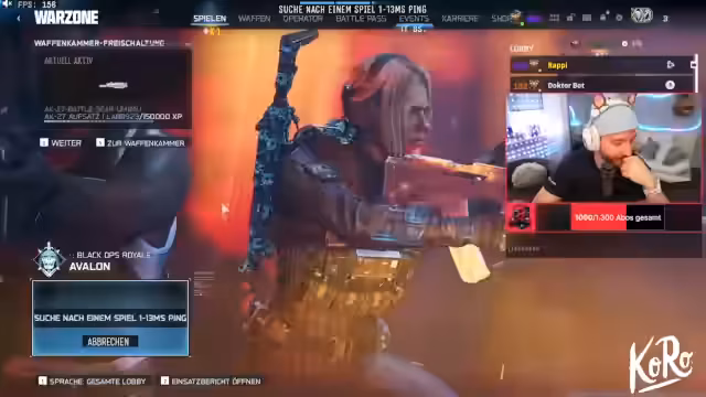 01:49:12Rappi beschreibt, dass das Gameplay im Multiplayer-Modus im Vergleich zu Warzone deutlich anders und in seiner Meinung besser anfühlt. Er berichtet von einem extrem lauten Sound in der Lobby und einer „blöden Sau“, die sich im Hintergrund bewegt. Außerdem erwähnt er die enorme Menge an Gegnern, die auf der Karte erscheinen, und das gespawnte Geräusch von Hähnchen.