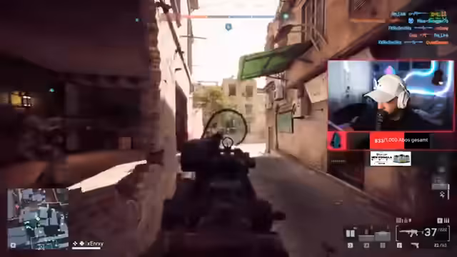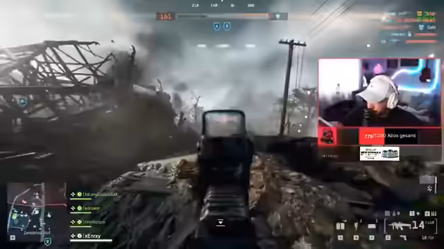 00:13:30Der Streamer erklärt den 'Durchbruch'-Modus in Battlefield 6, bei dem Teams um Territorien kämpfen. Nach technischen Startschwierigkeiten und Spawn-Problemen beginnt das Spiel mit vielen Spielern. Scrappy diskutiert Ticket-Systeme und strategische Entscheidungen während der ersten Runde.