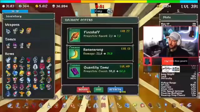 04:20:32Der Spielverlauf in Megabonk wird komplexer. Der Streamer betont die Wichtigkeit von 'Quantity', 'XP' und 'Difficulty' als Schlüssel zum Erfolg. Er zeigt, wie er Items wählt, um seine Feuerrate, den Schaden und die Anzahl der Gegner zu maximieren. Trotz eines schwierigen Starts und eines nicht optimalen Waffen-Updates durchbricht er mit der richtigen Kombination der Items eine hohe Schwierigkeitsstufe und farmt erfolgreich weiter.