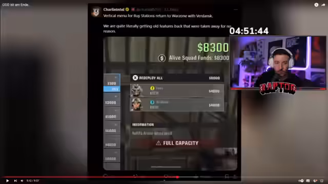 08:50:01Es wird ein Vergleich zwischen dem Zustand von Warzone in den Jahren 2019/2020 und dem aktuellen Zustand gezogen. Spieler, die in der Zwischenzeit kein COD gespielt haben, würden das Spiel in einem schlechten Zustand vorfinden, mit Lags, Bugs, schlechterer Grafik und vor allem vielen Cheatern. Es wird prognostiziert, dass dies zu einem kurzzeitigen Spike an Spielern führen wird, gefolgt von einem erneuten Rückgang und letztendlich der Einstellung von Warzone durch Activision. Es wird auf ein Video von Nadeshot verwiesen, in dem er die heimliche Verwendung von AI durch Activision thematisiert. Activision hat inzwischen zugegeben, dass in-game Assets durch AI erstellt wurden, was auf eine neue Regelung von Steam zurückzuführen ist. Es wird auch die Ablehnung einer Anti-AI-Klausel durch Activision kritisiert, was zur Kündigung von Voice Actors führte. Abschließend wird die Verschiebung von Season 3 um zwei Wochen auf den 3. April thematisiert, was die längste Zeit ohne neuen Content in der Geschichte von Call of Duty darstellt.